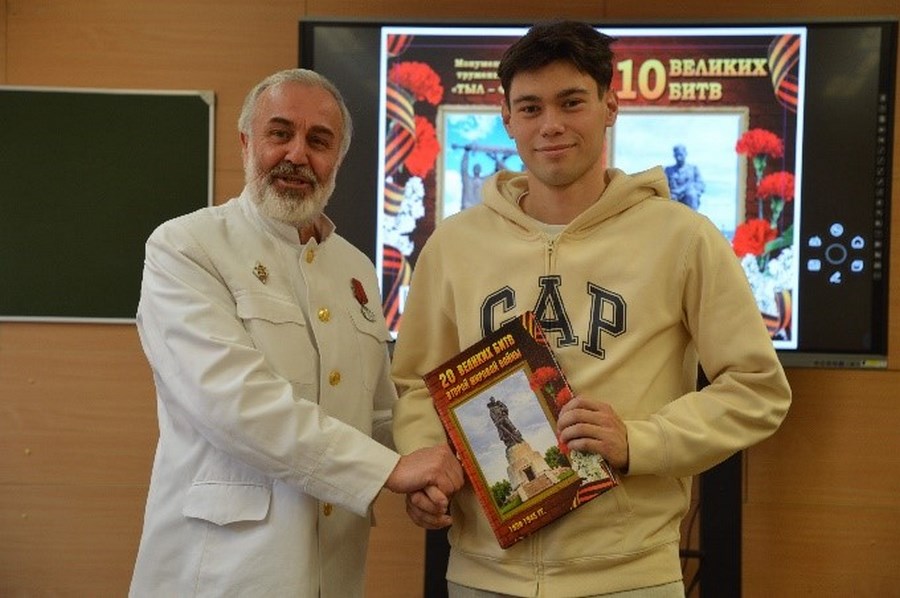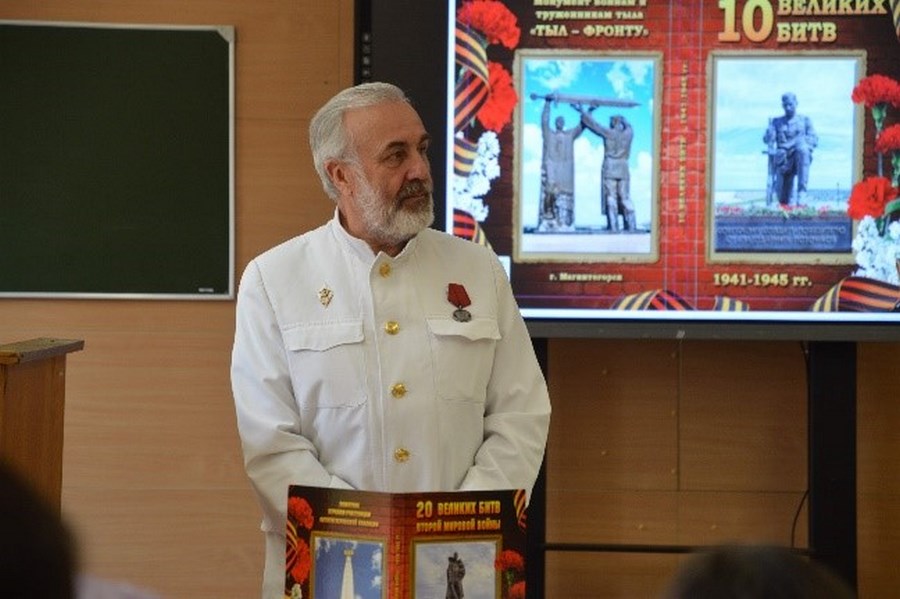 Затем встреча продолжилась в студенческой среде на кафедре «Философия, история и политология», где Полонский С.И. презентовал свою книгу «20 Великих битв Второй Мировой войны 1939-1945 гг.»