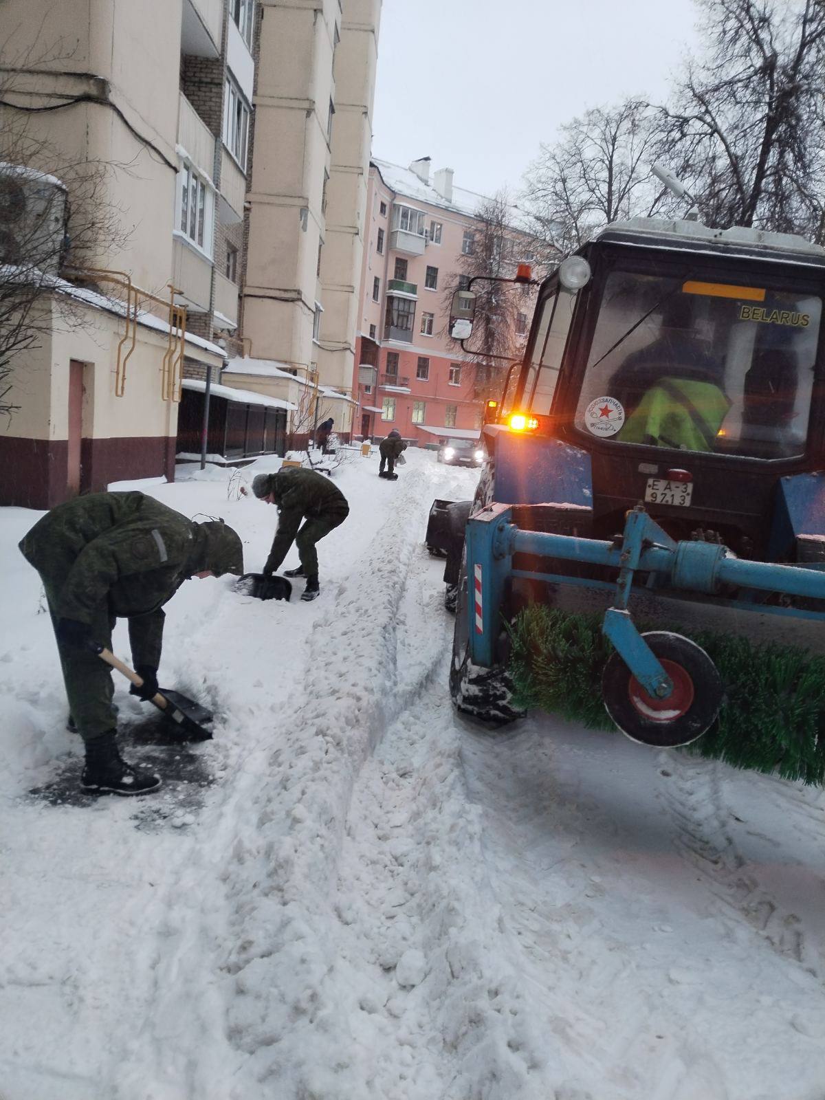 8 января студенты механического факультета, курсанты военно-транспортного факультета и работники АХЧ БелГУТа вышли на уборку снега, оказав помощь Железнодорожному району города Гомеля.