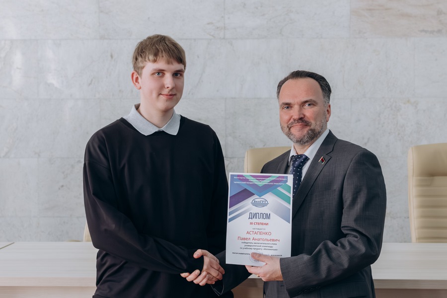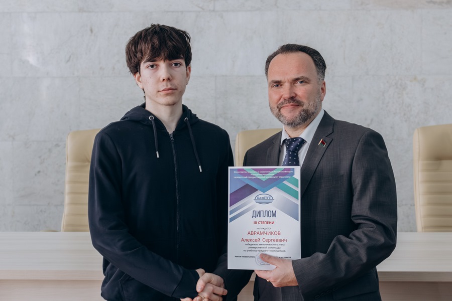 Дипломы вручил ректор Белорусского государственного университета транспорта Казаков Николай Николаевич.
