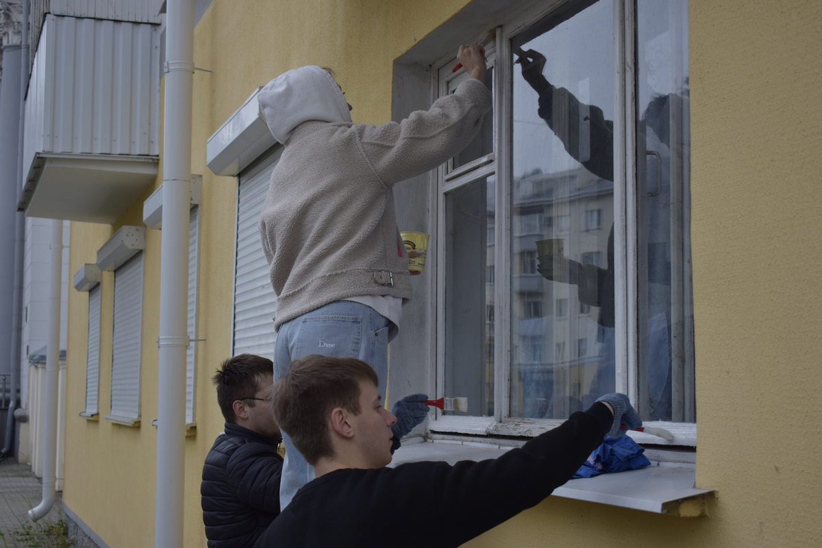 Студенты механического факультета под руководством заместителя декана по идеологической и...