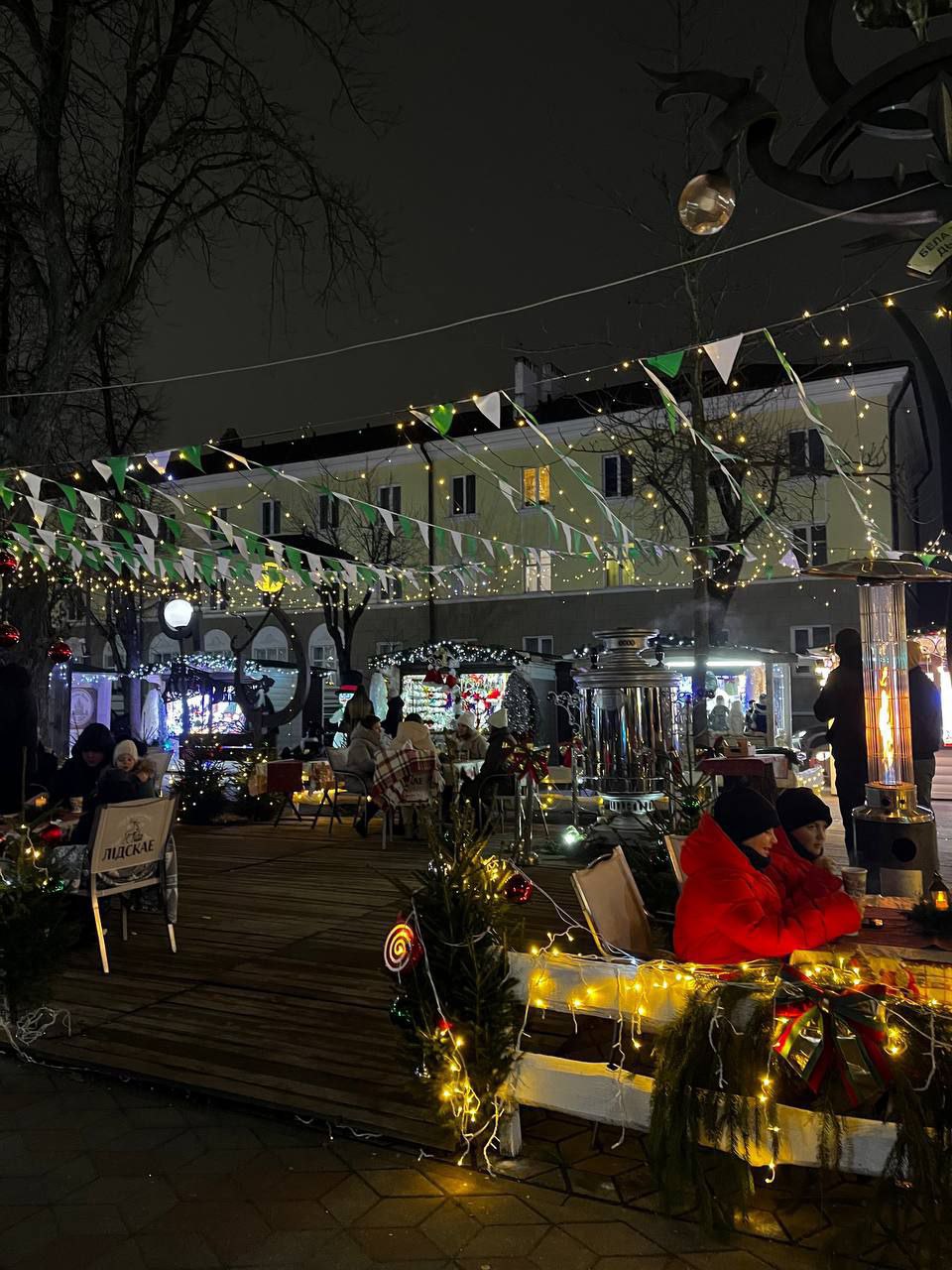 На Советской улице в Бресте, главной пешеходной артерии города, где царит праздничная новогодняя атмосфера: она украшается иллюминацией, гирляндами, торговыми палатками, что позволяет наслаждаются духом Рождества и Нового года.