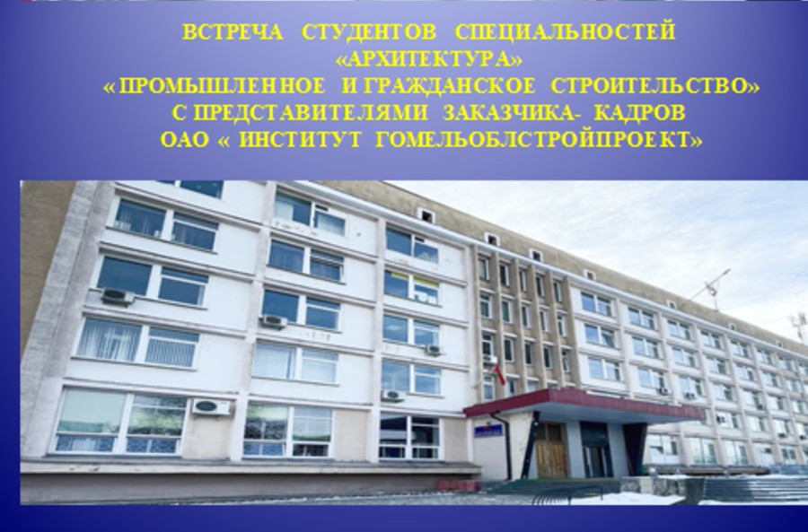 16 октября прошла встреча студентов 4 курса специальности 1-70 02 01 «Промышленное и гражданское строительство» с заместителем генерального директора-главным инженером ОАО «Гомельпромстрой» - Лин...