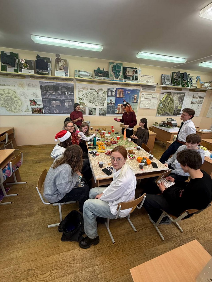 Вместе со своими кураторами Смирновой Светланой Владимировной и Руденковой Ириной Викторовной будущие архитекторы обменялись новогодними подарками и теплыми пожеланиями. Мероприятие помогло укрепить дружеские связи в группах и создало праздничное настроение в преддверии 2026 года.