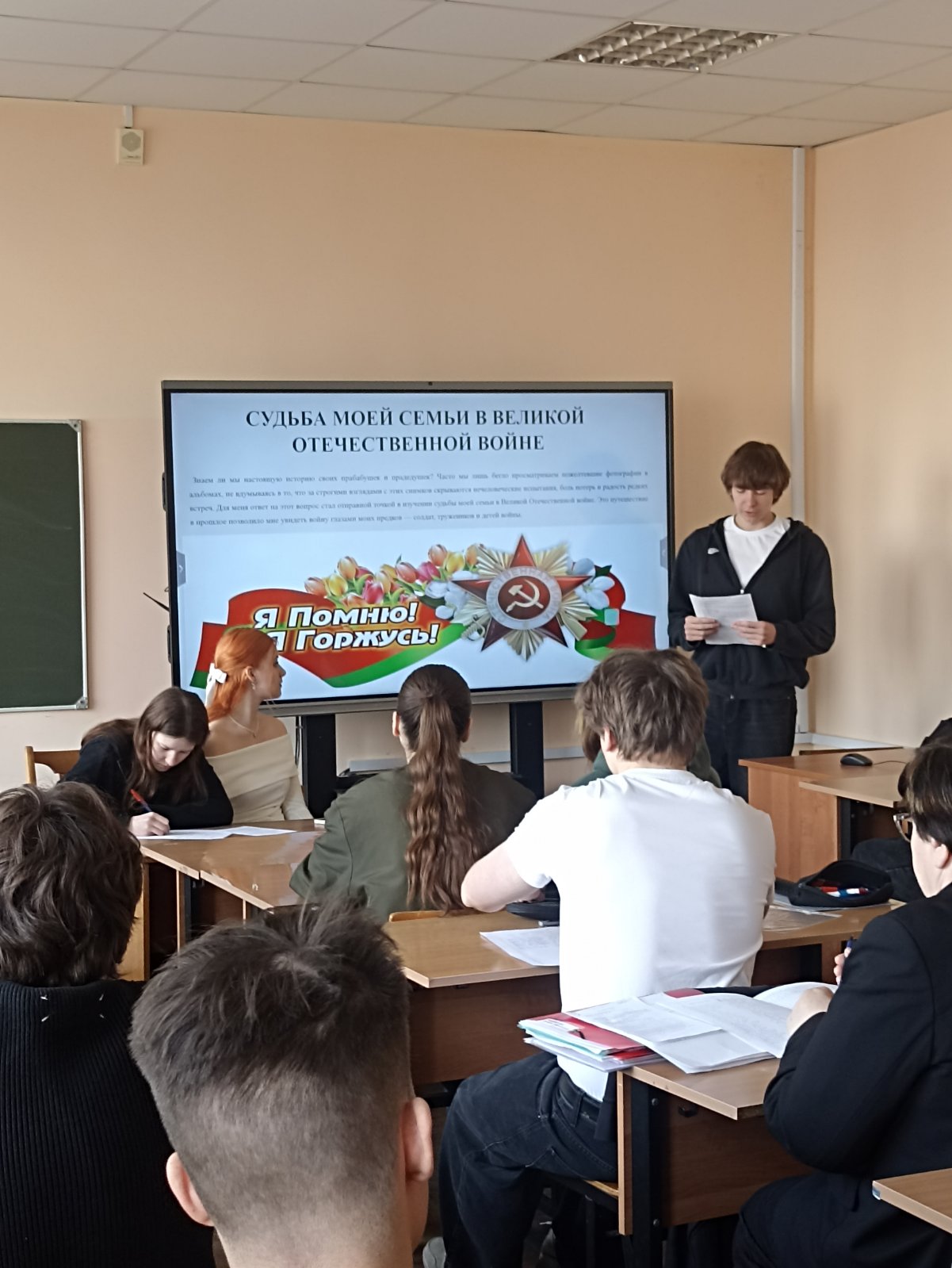 13 апреля доцент кафедры «Философия, история и политология» Г.М. Чаянкова провела со студентами гр. ПАм-11 и ПСм-12 круглый стол «Великая Отечественная война: помним и гордимся», посвящённый 81-й годовщине Великой Победы.