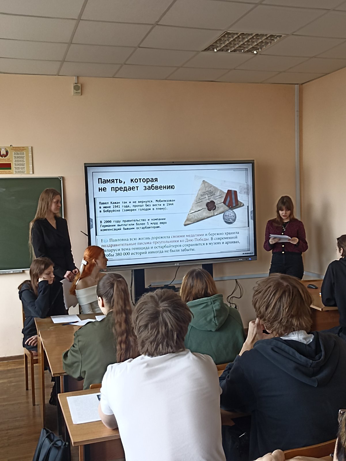 Были обсуждены проблемы важности сохранения исторической памяти о Великой Отечественной войне как в рамках страны, так и в каждой семье. В Беларуси нет ни одной семьи, в которой бы война не оставила свой след. Студенты рассказали о своих родственниках, которые принимали участие в боевых действиях, были узниками, в т. ч. и малолетние, концентрационных лагерей, пережили весь ужас оккупации. Звучали рассказы о прадедушках и прабабушках, других родственниках, героях и рядовых той великой войны. Лейтмотивом круглого стола стал вопрос о важности исторической памяти.  Если мы помним, значит подвиг предков не был напрасным. Никто не забыт и ничто не забыто.