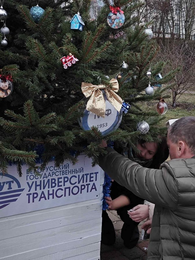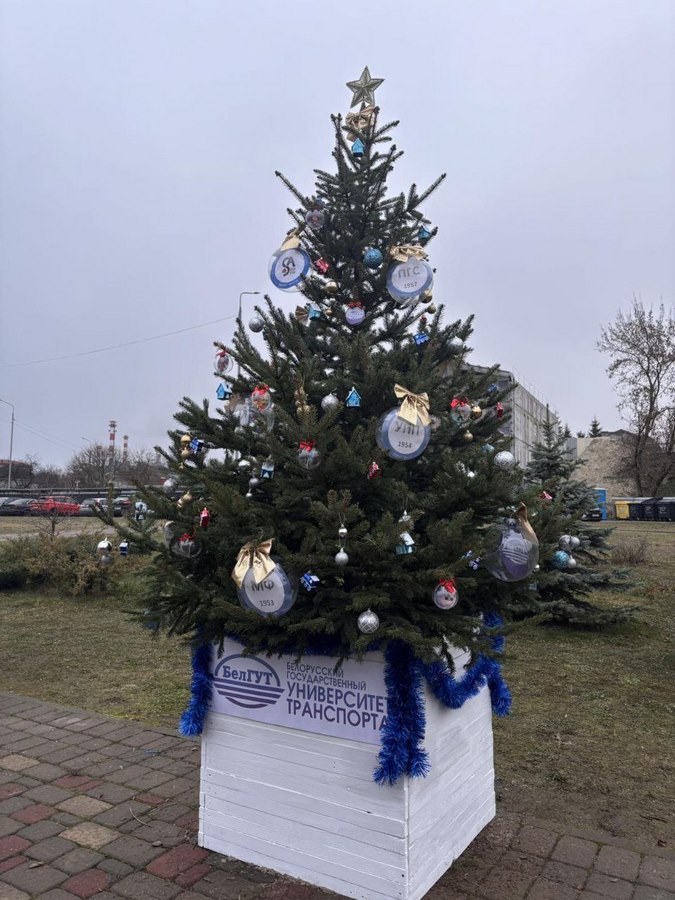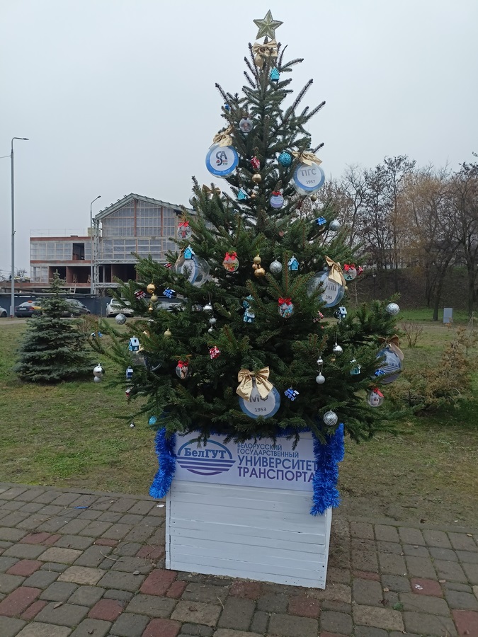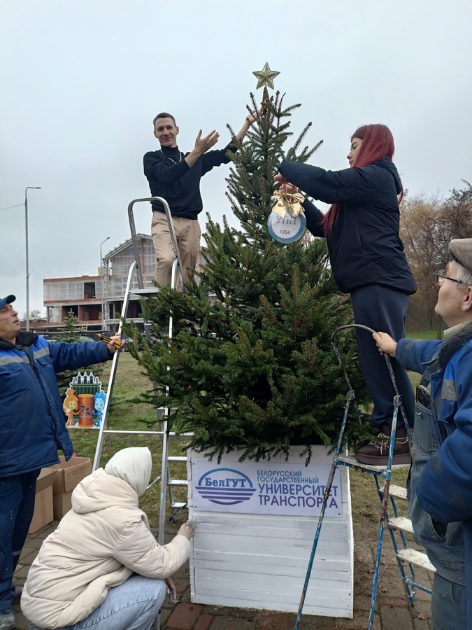 Студенты факультетов «Промышленное и гражданское строительство» и «Управление процессами перевозок» объединили свои усилия в разработке дизайна и оформлении ёлки Белорусского государственного университета транспорта для участия нашего вуза в городском конкурсе «Парад елей».