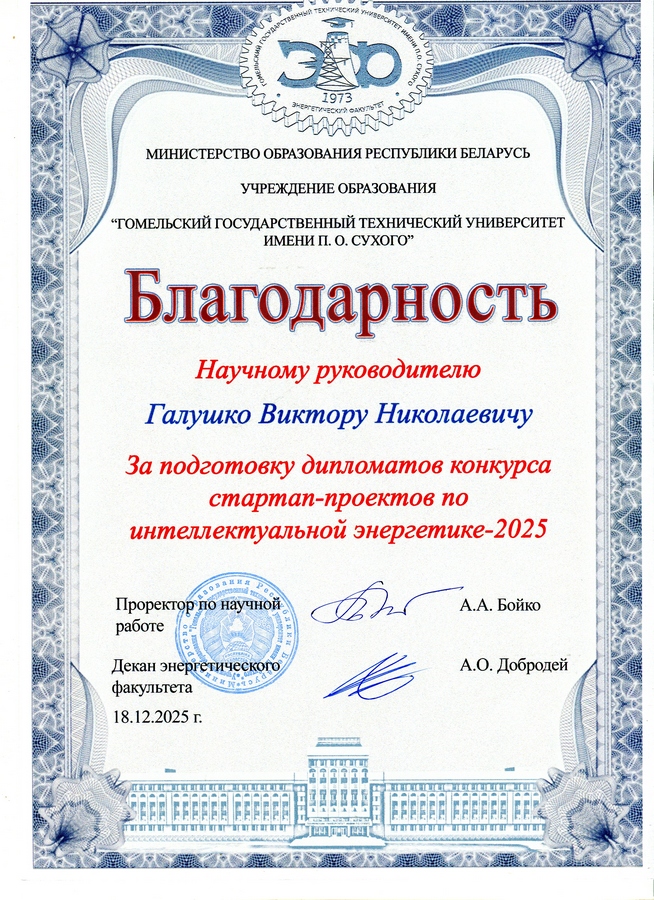 18 декабря 2025 года в ГГТУ им. П.О. Сухого проходил конкурс стартап-проектов по интеллектуальной энергетике.