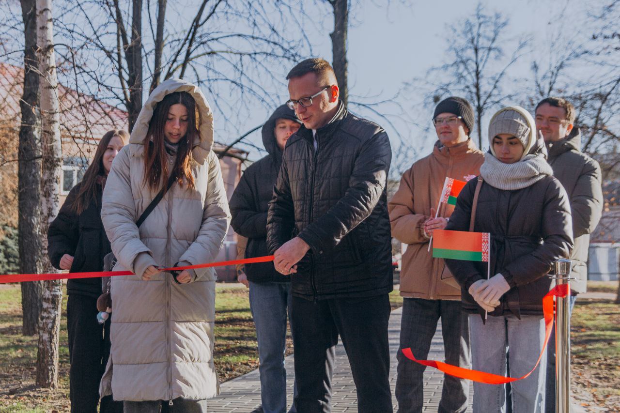 Под руководством заместителя декана по идеологической и воспитательной работе Руденковой Ирины Викторовны инициативная группа студентов-архитекторов факультета «Промышленное и гражданское строительство» Белорусского государственного университета транспорта разработала проект благоустройства, который стал основой для созданного объекта.