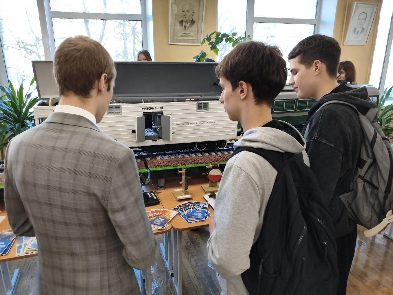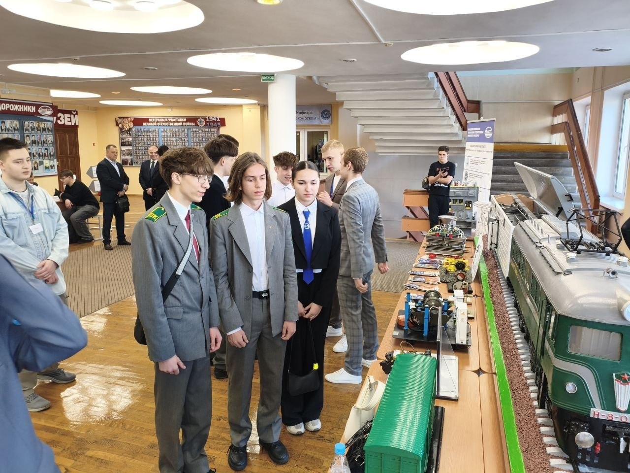 В холле перед актовым залом развернулась тематическая фотозона, где участники делали памятные кадры в железнодорожной форме. Возможно, именно эти снимки станут их первыми фотографиями в стенах будущей альма-матер.