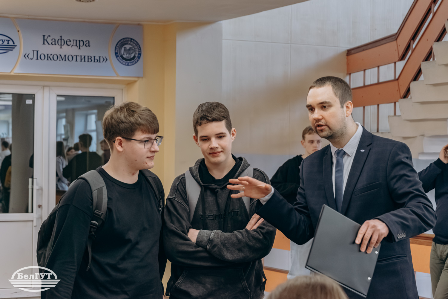 Декан электротехнического факультета Фёдор Ефимович Сатырев представил абитуриентам презентацию профилизаций специальности «Системы обеспечения движения поездов». После вступительной речи абитуриентам продемонстрировали лаборатории факультета и провели несколько мастер-классов.