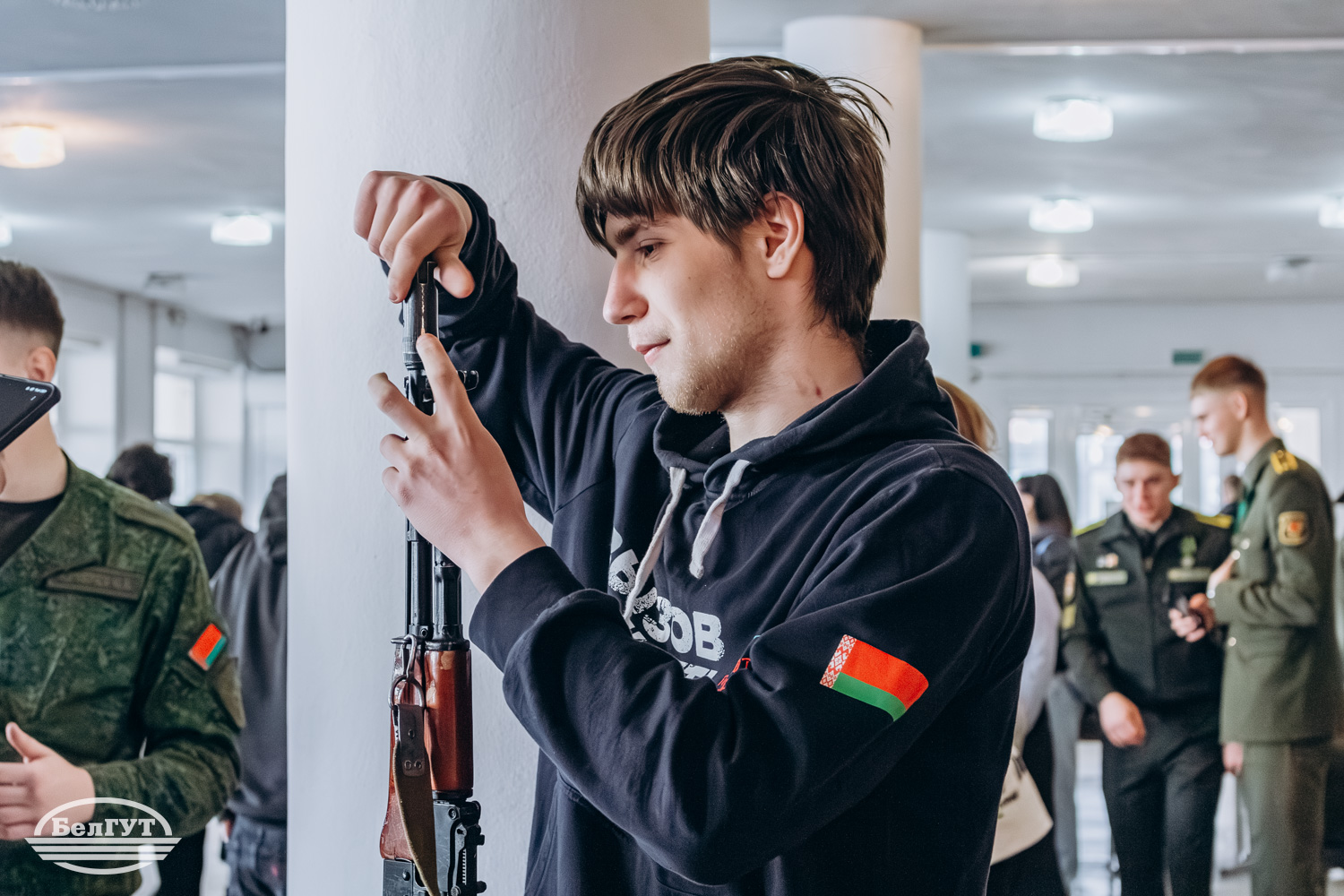 Специальная тематическая выставка, занявшая целый этаж, раскрыла абитуриентам специфику выполнения задач подразделениями по предназначению, а также позволила ознакомиться с образцами стрелкового оружия.