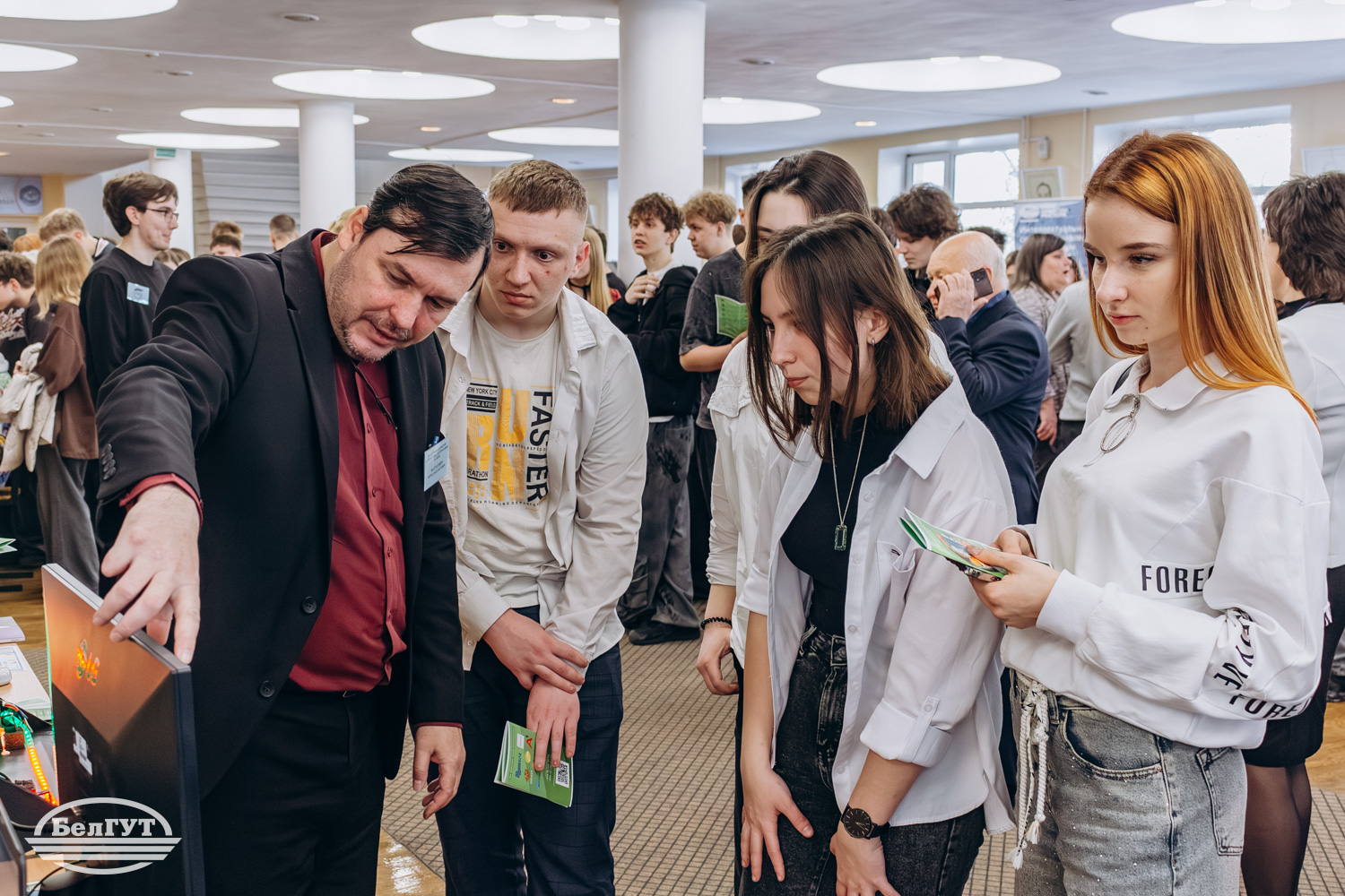Студенты-волонтеры с каждого факультета проводили регистрацию участников, помогали ориентироваться в университете и отвечали на вопросы. Одновременно с регистрацией работали интерактивные экспозиции факультетов.