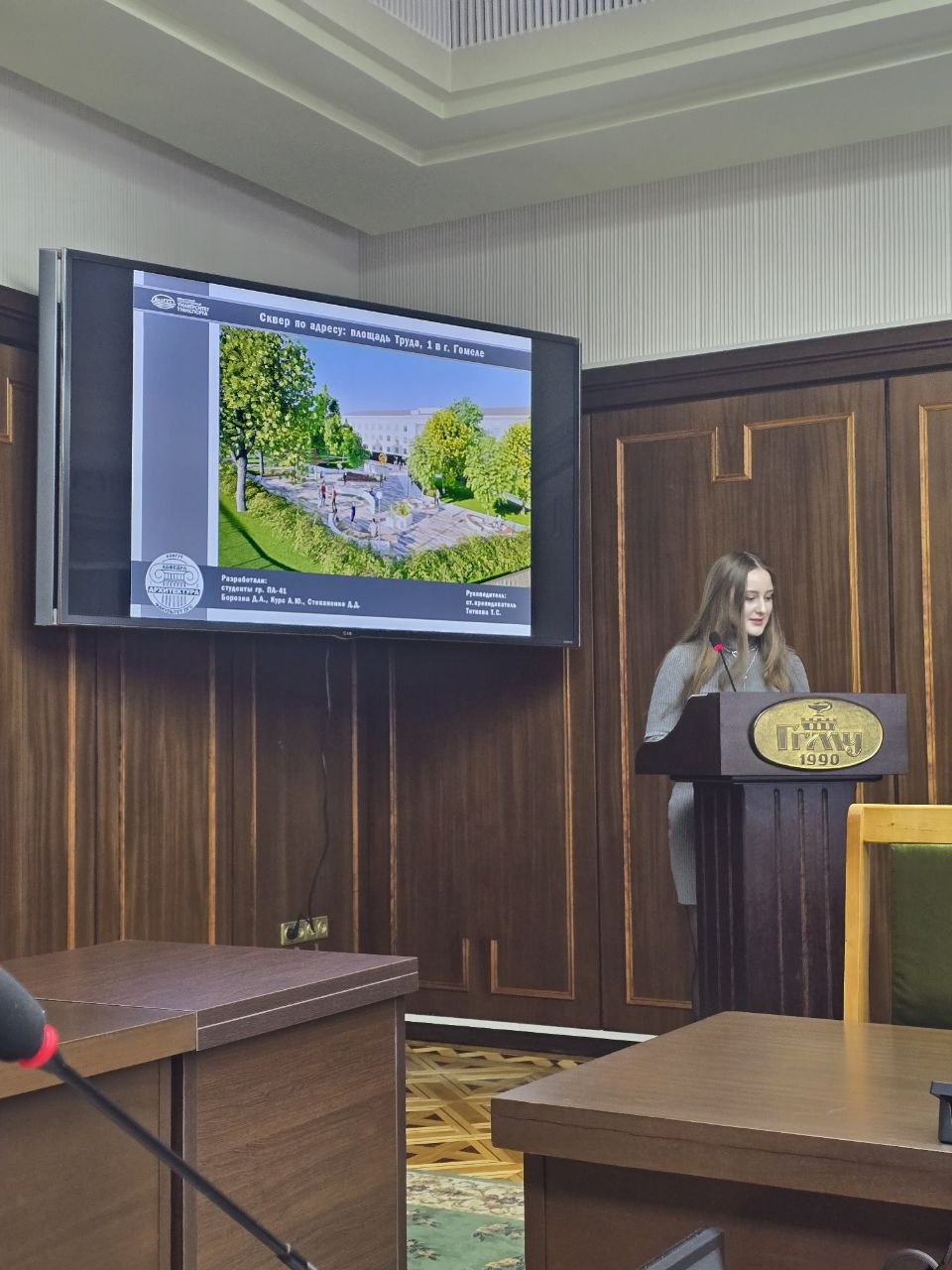 Эксперты были ознакомлены с эскизными проектами сквера «Молодежный» по ул. Советской, сквера по ул. Головацкого и сквера возле Гомельского государственного дорожно-строительного колледжа, выполненные под руководством старших преподавателей кафедры «Архитектура и строительство» Велюгиной Н.Е., Титковой Т.С., Руденковой И.В.