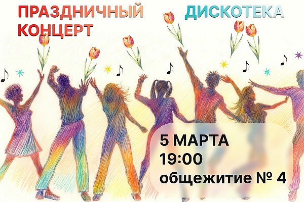 5 марта в 19:00 в общежитии № 4 состоится праздничный концерт, посвященный Дню женщин!