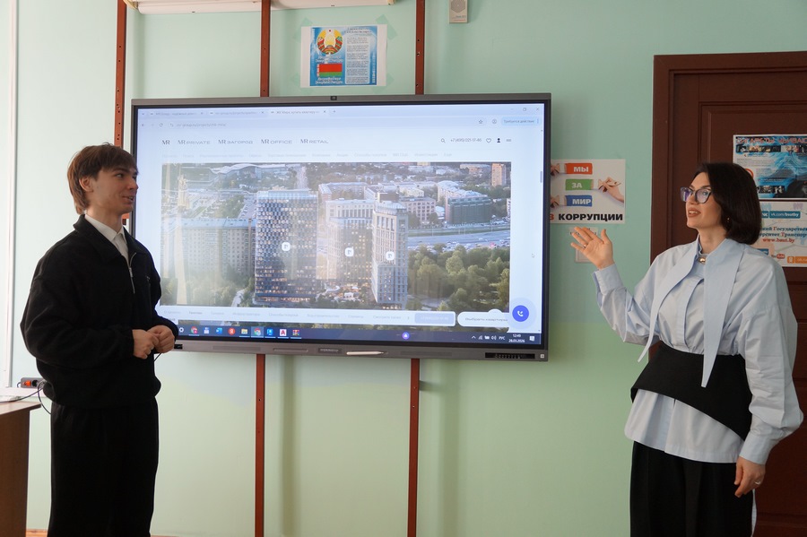 Встреча со школьниками выпускного класса СШ № 23 им. А.Н. Хуторянского г. Гомеля по профориентациии (с участием студентов факультета ПГС Зеленко Я.А., Оленина В.В.).