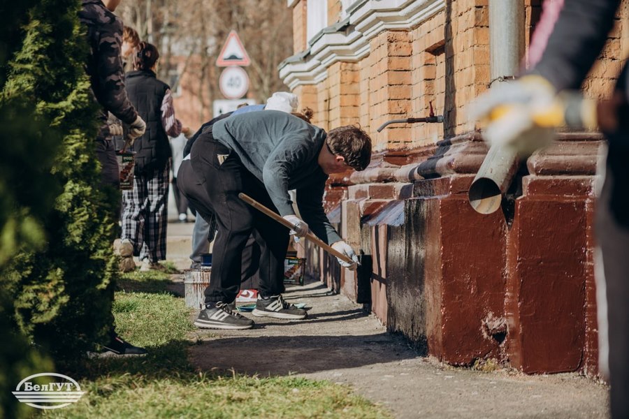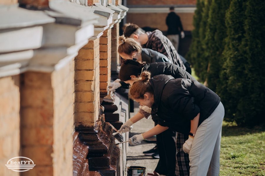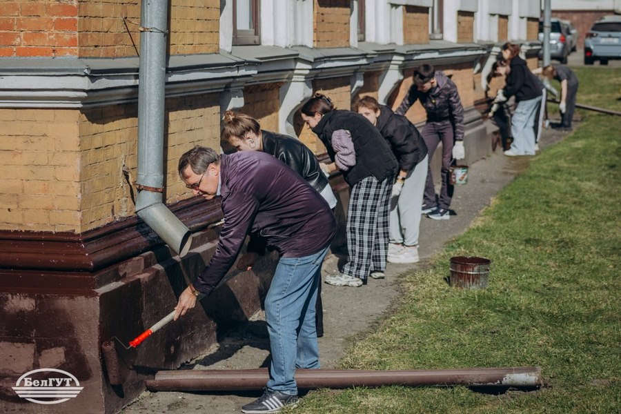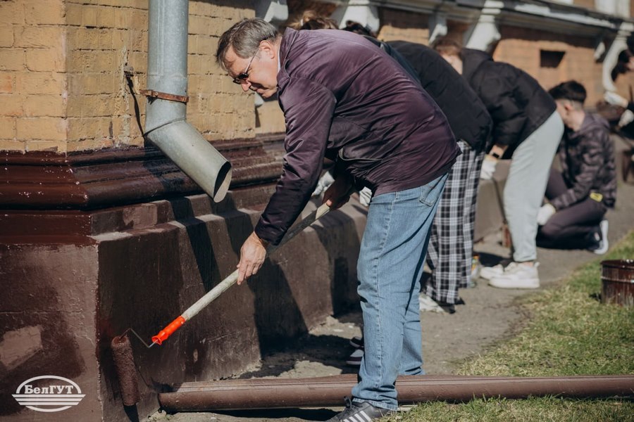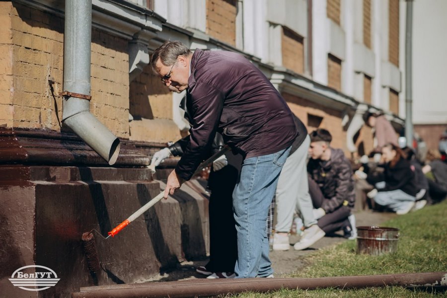 Асаблівая ўвага ў гэты дзень была ўдзелена эстэтыцы галоўнага корпуса. Пад кіраўніцтвам дырэктара Інстытута павышэння кваліфікацыі і перападрыхтоўкі кіраўнікоў і спецыялістаў транспартнага комплексу Зянкевіча Аляксандра Георгіевіча студэнты розных факультэтаў аб'ядналі намаганні для адказнай задачы. Хлопцы займаліся афарбоўкай цокаля будынка універсітэта, уносячы свой уклад у абнаўленне аблічча альма-матэр.