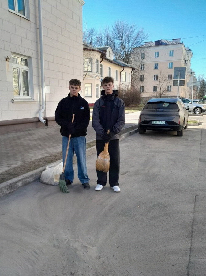 Студэнты інтэрната № 2 разам з куратарам адной з груп Э.В. Швайлікавай правялі вялікую працу: старанна прыбралі каштанавую алею, тратуар вакол інтэрната, унутраны двор і баскетбольную пляцоўку, пафарбавалі цокаль інтэрната.