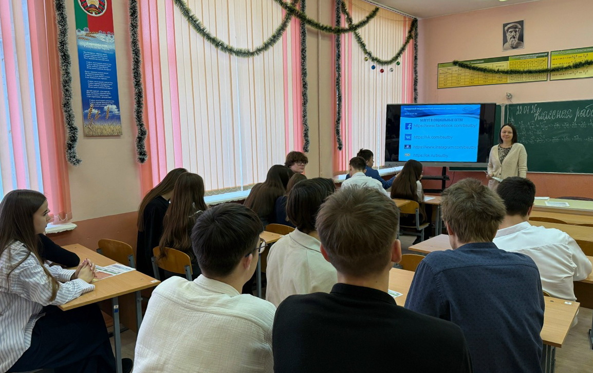 22.01.2026 в ГУО «Средняя школа № 5 г. Гомеля» прошла профориентационная встреча старшего преподавателя кафедры «Архитектура и строительство» Велюгиной Н.Е. с учениками 11 класса.