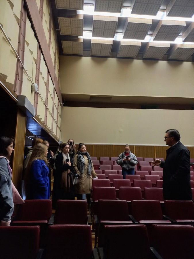 Конкурсанты исследовали планировку, освещенность и конструкции для дальнейшей трансформации существующих интерьеров входной группы, фойе и актового зала. Экскурсию провел заместитель генерального директора Куневич Максим Владимирович, что позволило студентам получить информацию о функциональных требованиях к объектам «из первых уст».