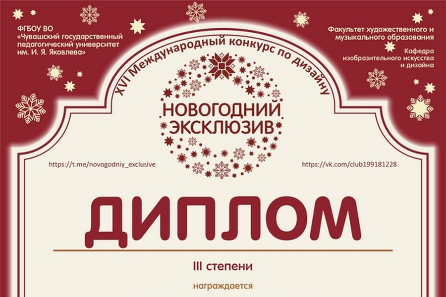 В ноябре-декабре 2025 года в Чувашском государственном педагогическом университете им. И.Я. Яковлева проходил XVI Международный конкурс по дизайну «Новогодний эксклюзив – 2026».