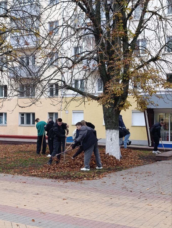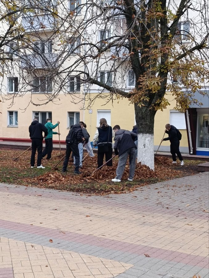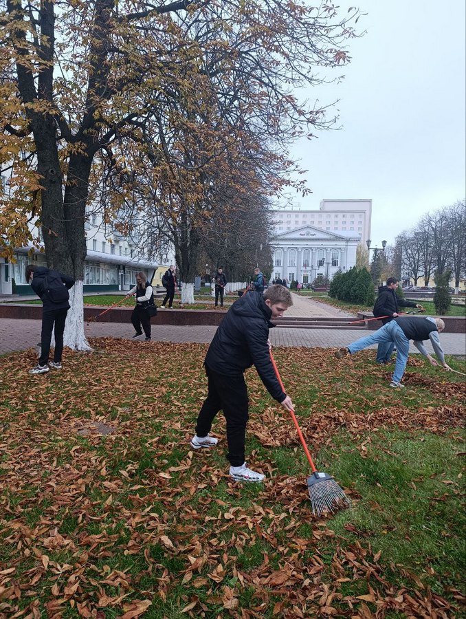 В рамках мероприятий, посвященных Году благоустройства, 22 октября 20 студентов первого курса электротехнического факультета вышли на уборку территории площади Победы от опавшей листвы.