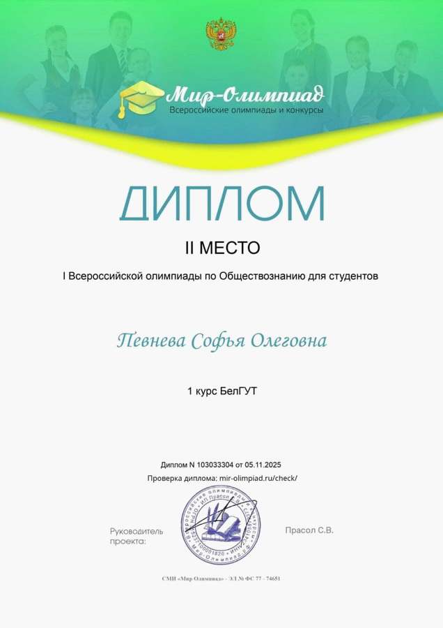 По результатам олимпиады в индивидуальном зачете дипломы II степени получили: Певнева Софья Олеговна ГЭ-14(ГС-11); Мехова Елизавета Валерьевна ГЭ-14(ГС-11), Ефремова Мария Руслановна ГЭ-14(ГС-11), Воробей Ольга Сергеевна ГЭ-14(ГС-11). Медведев Никита Максимович получил диплом участника.