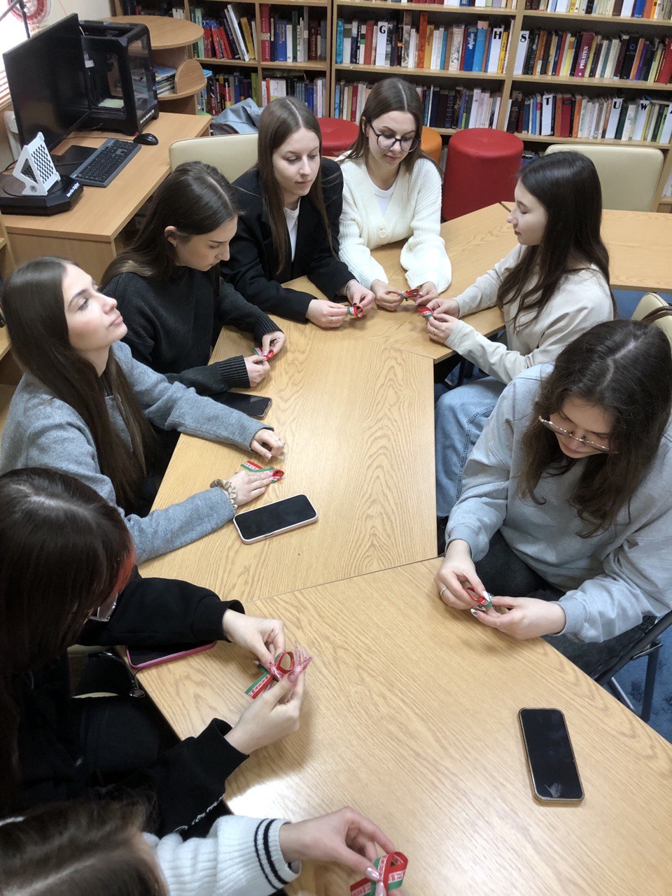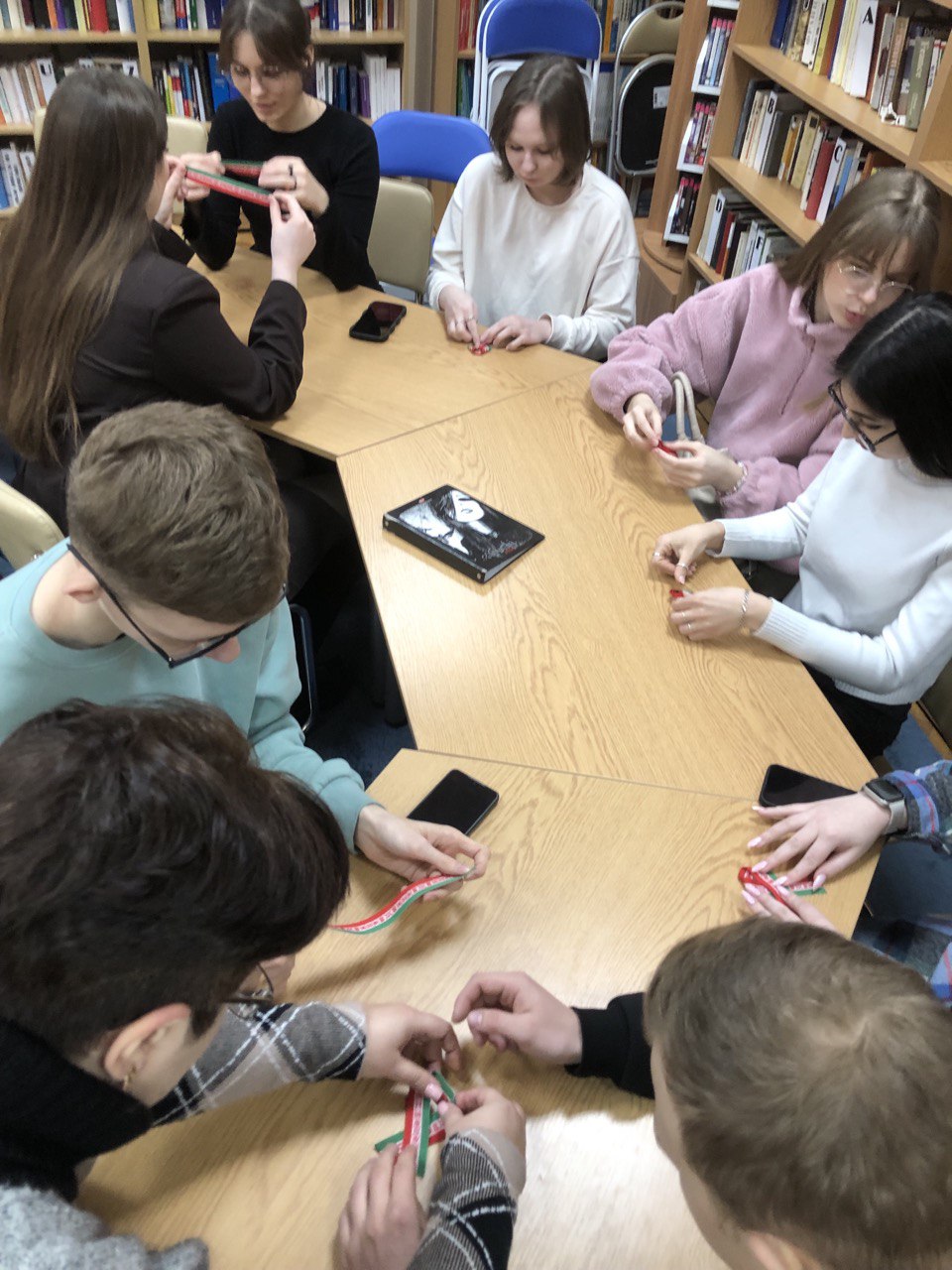 24.02.26 студенты группы ГТ-21 в сопровождении старшего преподавателя кафедры славянских и романо-германских языков Макутониной Е. Ю. посетили областную библиотеку им.В.И.Ленина для участия в интерактивной викторине «Своя игра. Салют Победы: игра Памяти», а также в мастер-классе по изготовлению бутоньерок нового образца «Цветы великой победы».